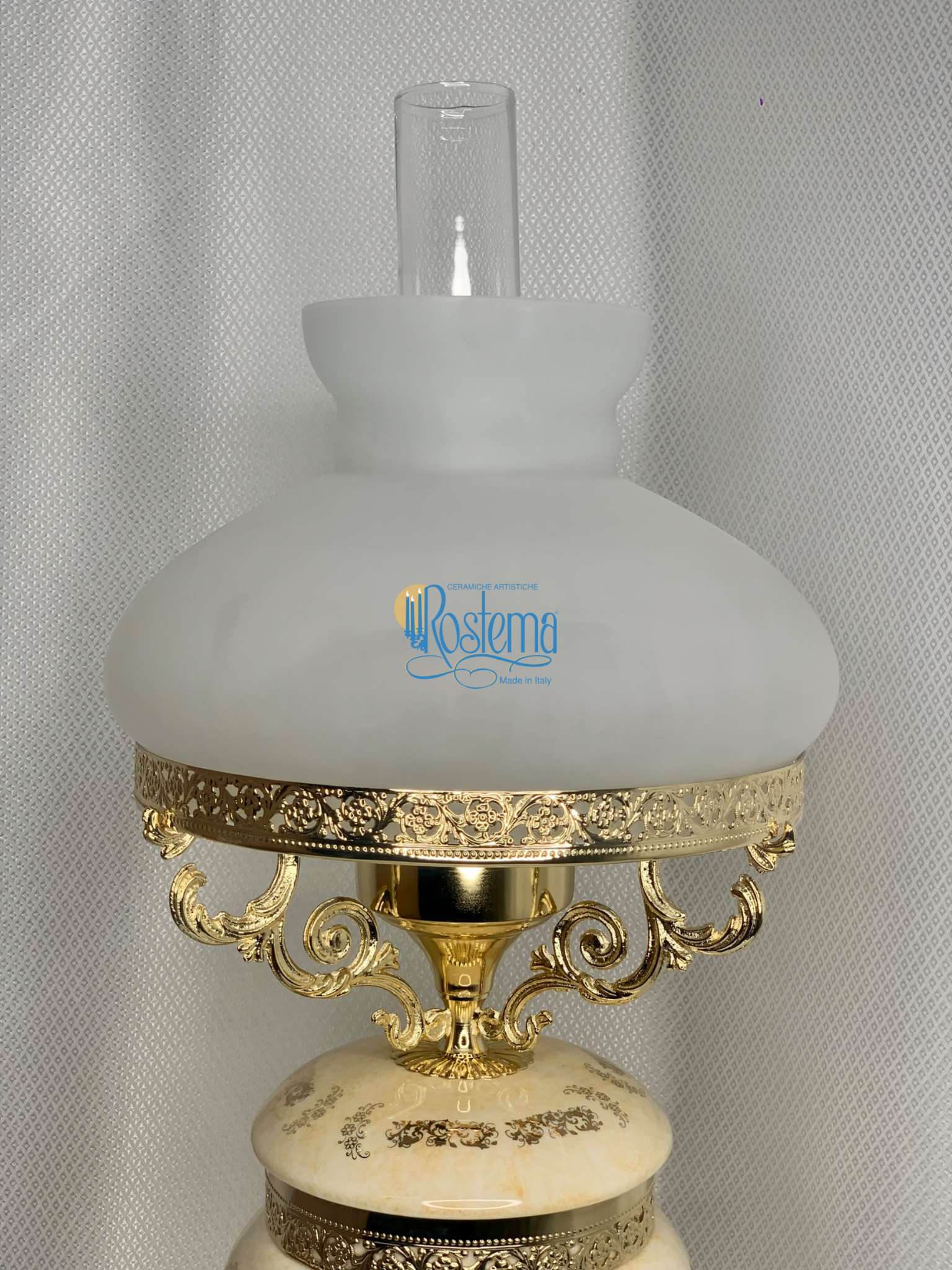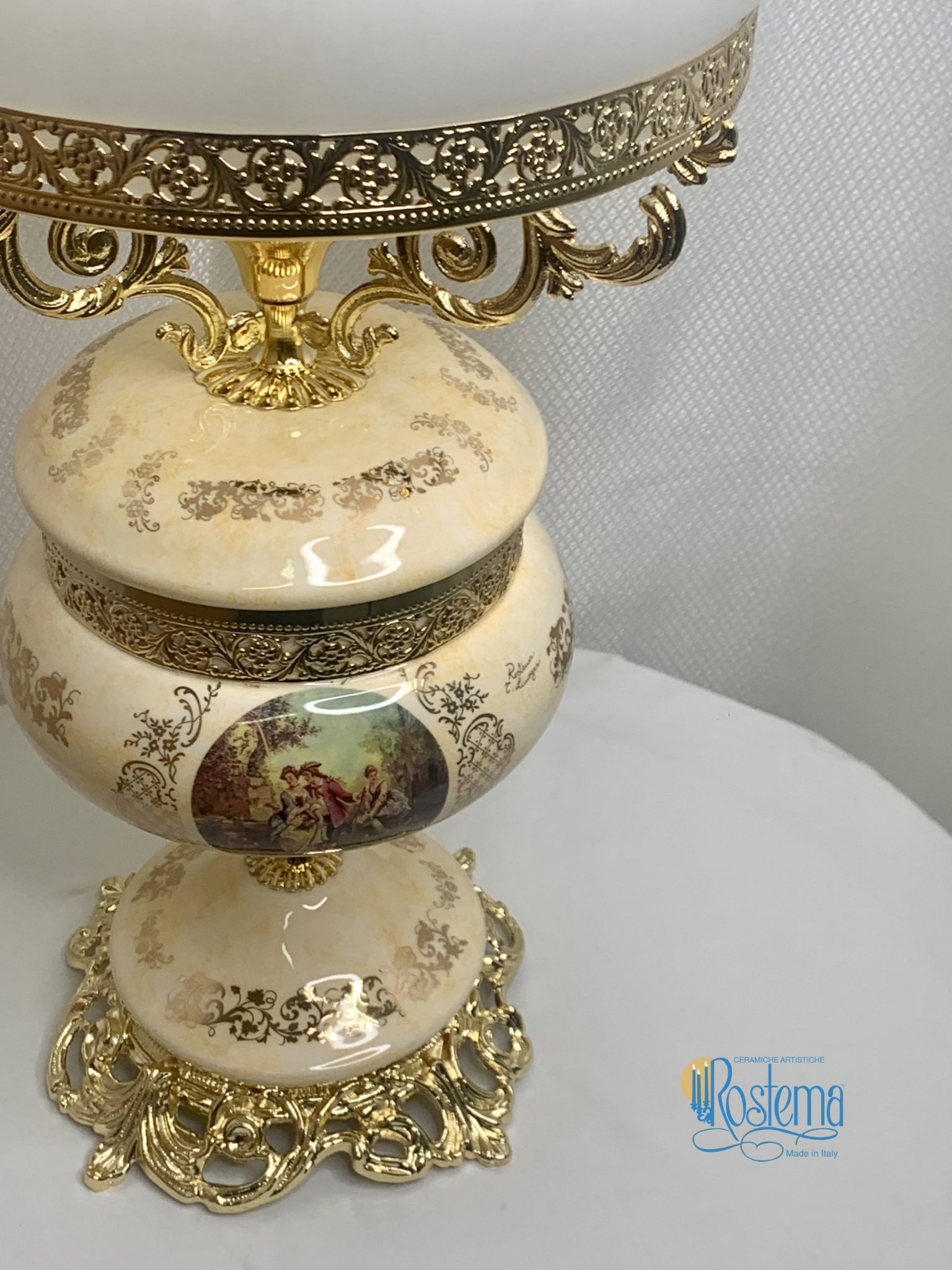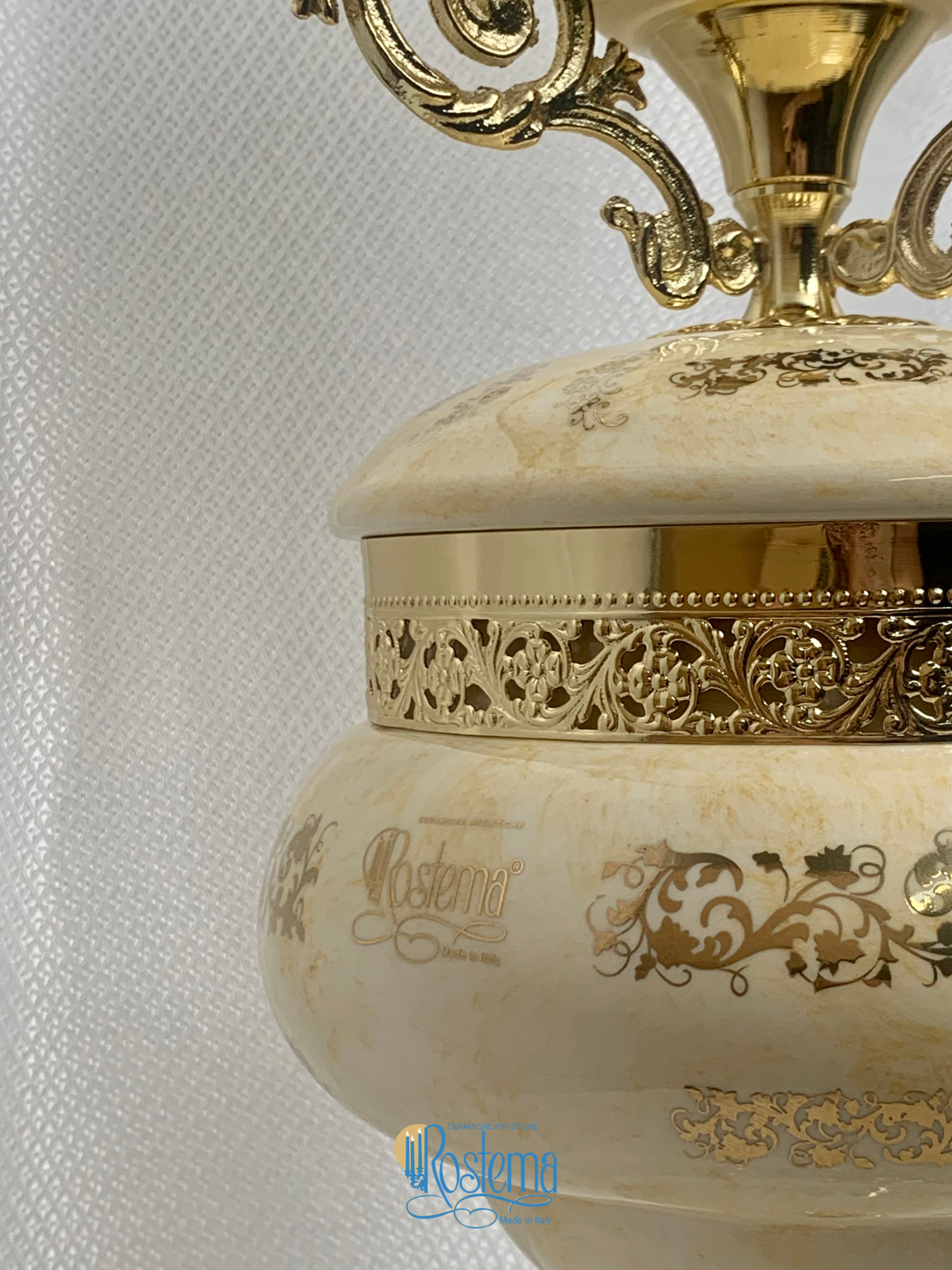 Ceramica smaltata cotta a gran fuoco, Ottone con bagno in Oro 24kt, Decorazioni in Oro, Vetro satinato