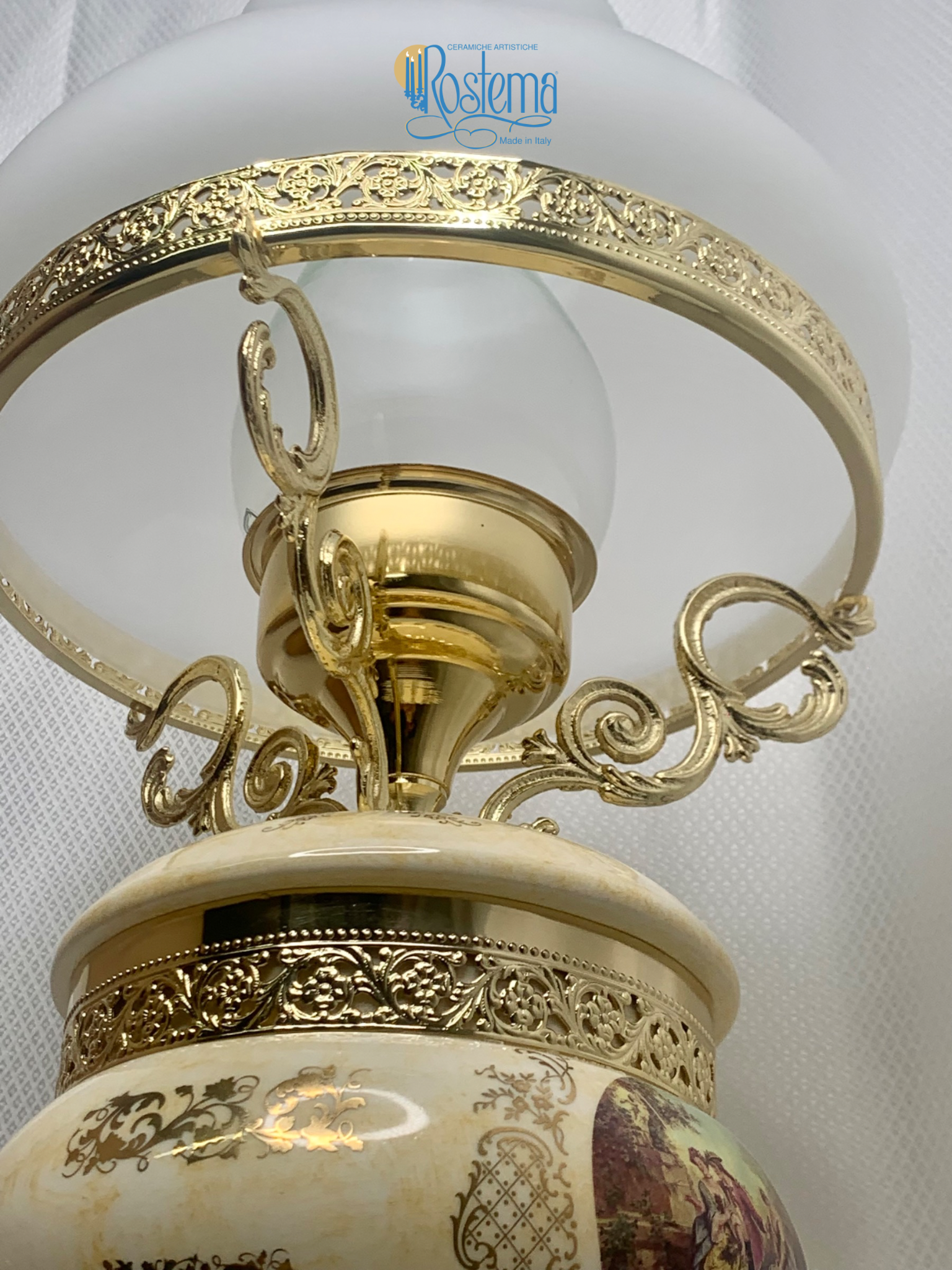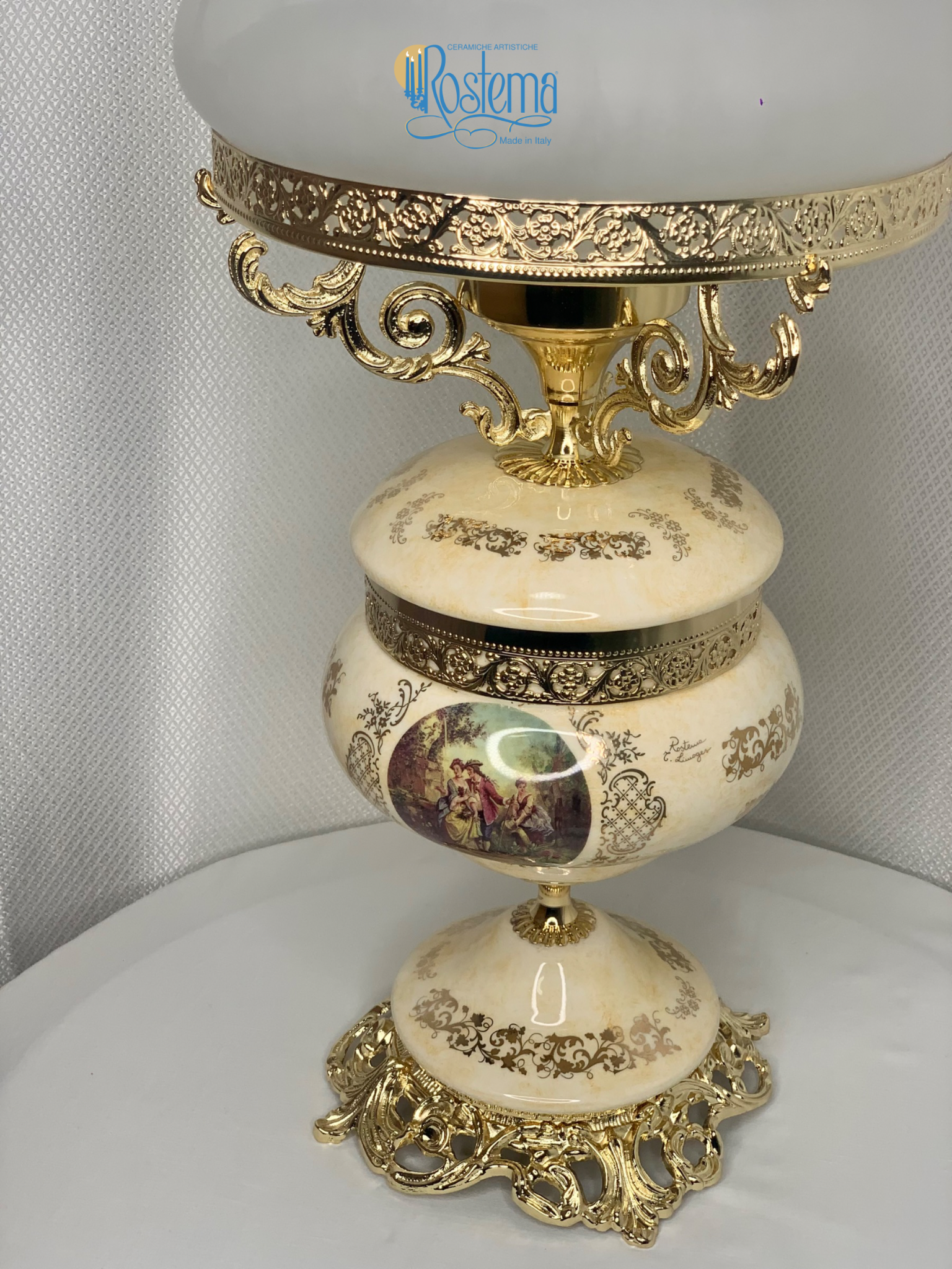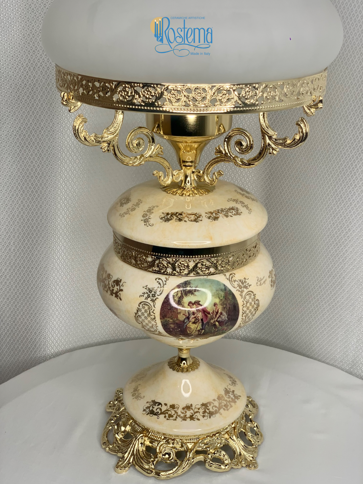 Ceramica smaltata cotta a gran fuoco, Ottone con bagno in Oro 24kt, Decorazioni in Oro, Vetro satinato