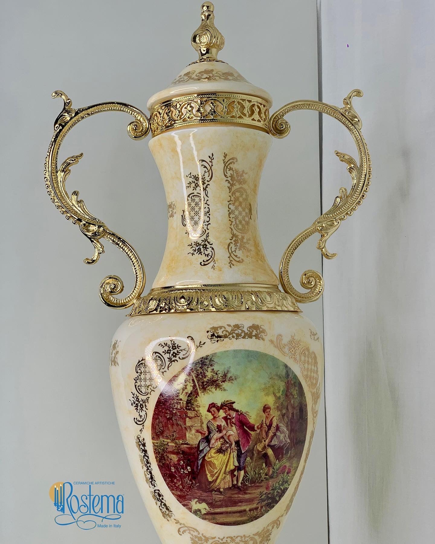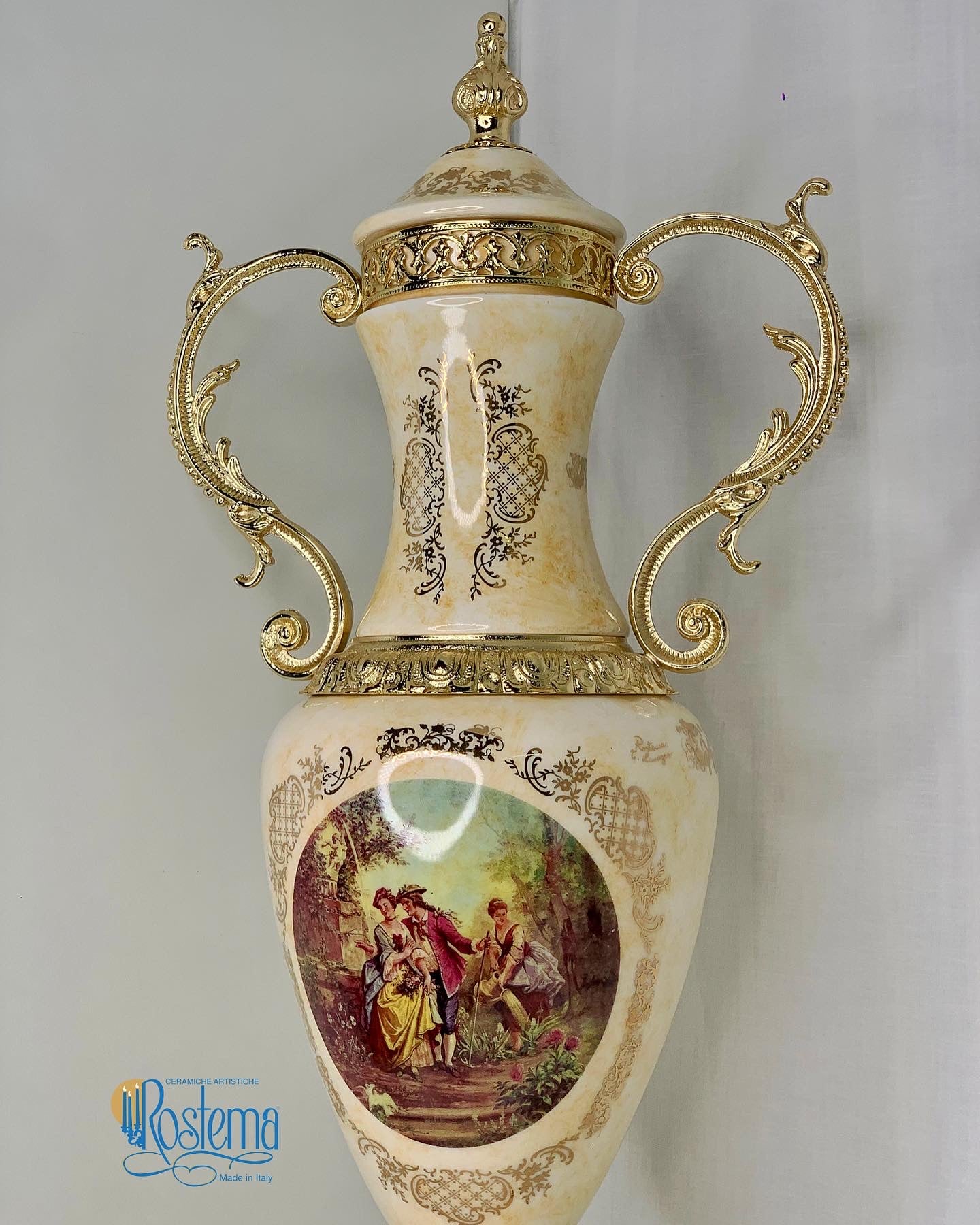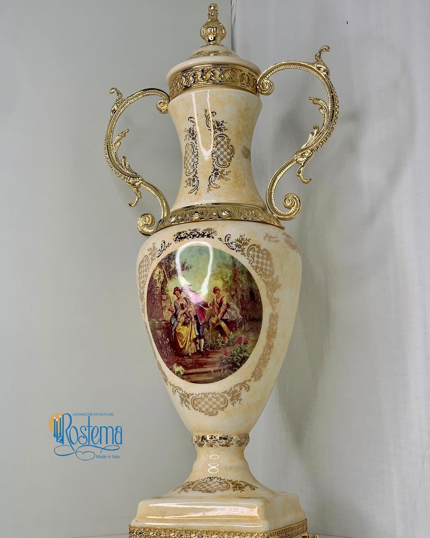 Ceramica smaltata cotta a gran fuoco, Ottone con bagno in Oro 24kt, Decorazioni in Oro.