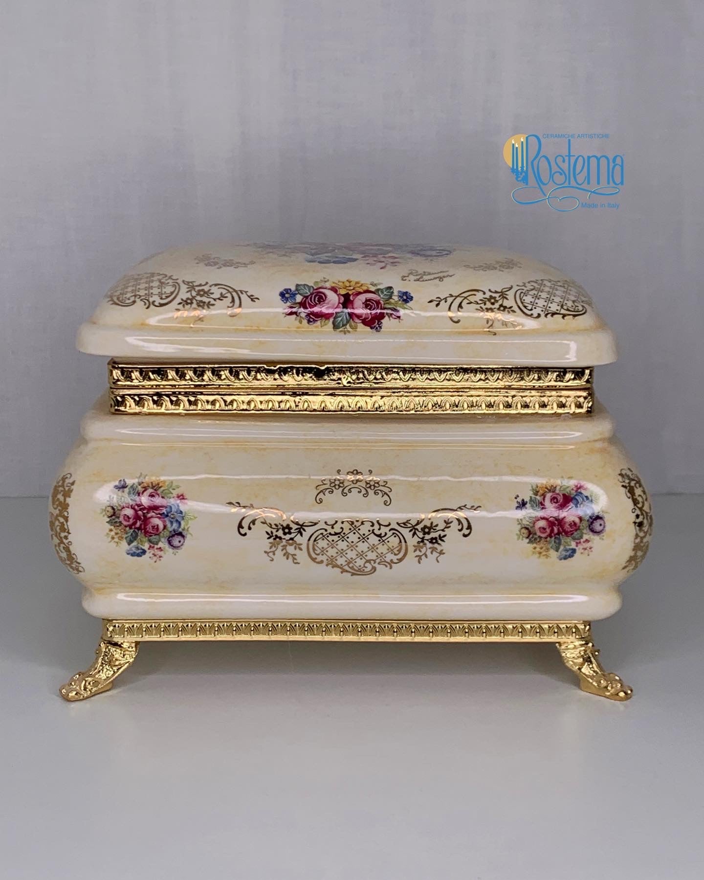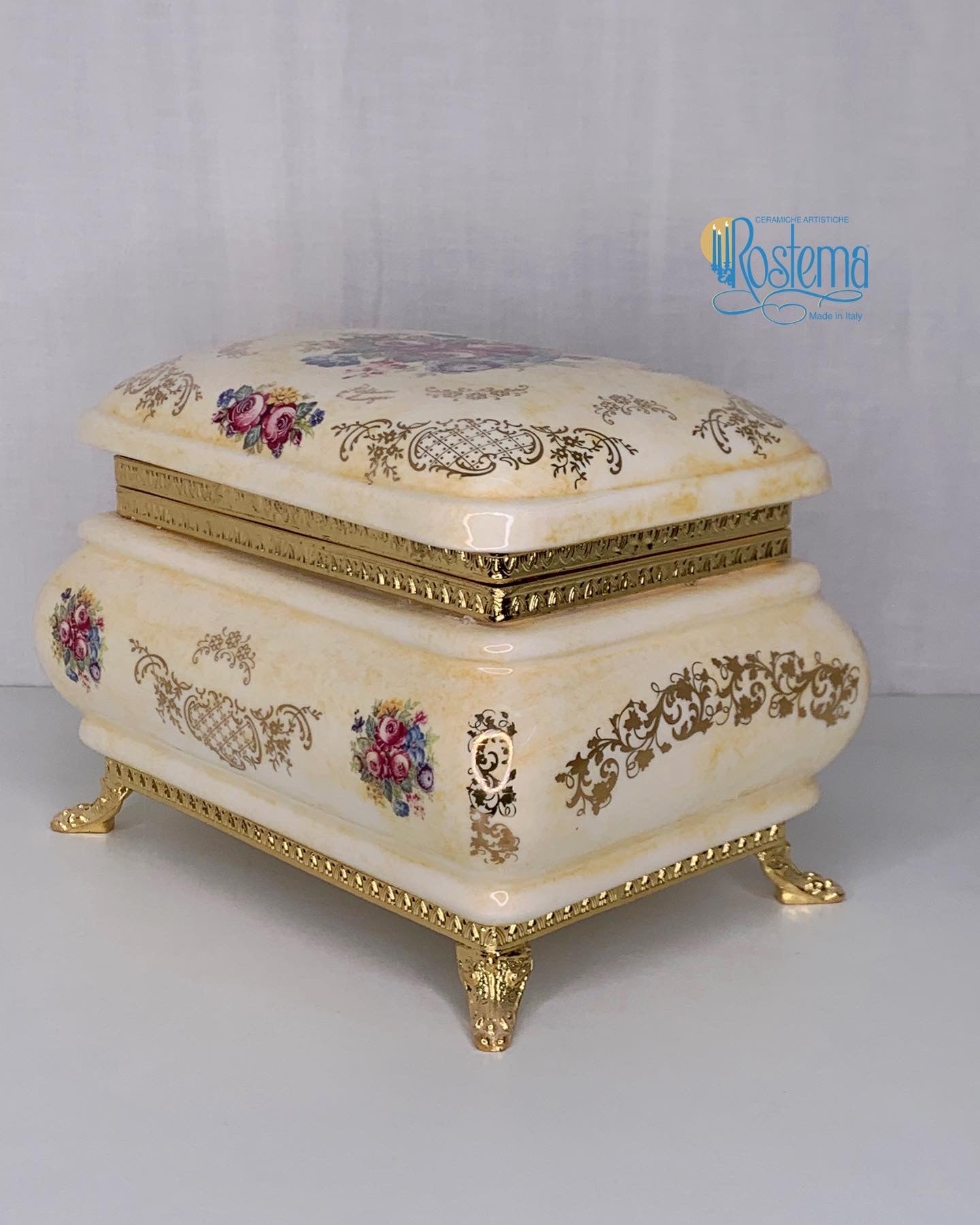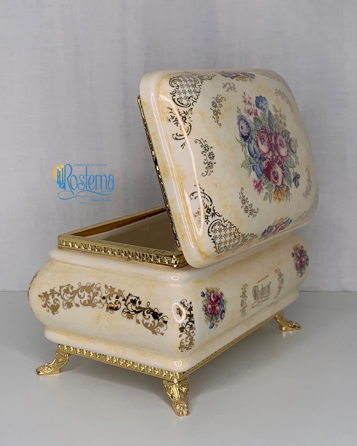 Ceramica smaltata cotta a gran fuoco, Ottone con bagno in Oro 24kt, Decorazioni in Oro.