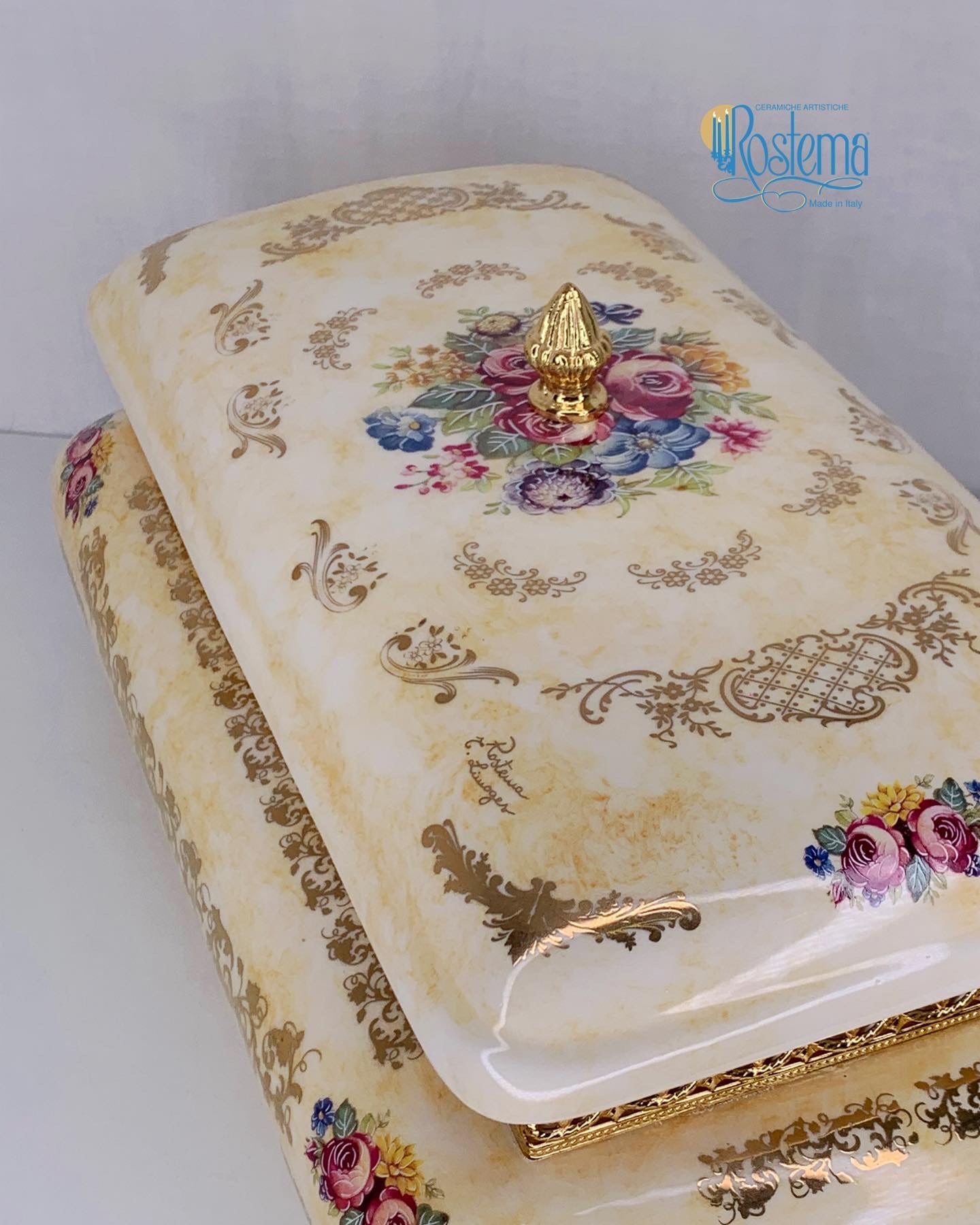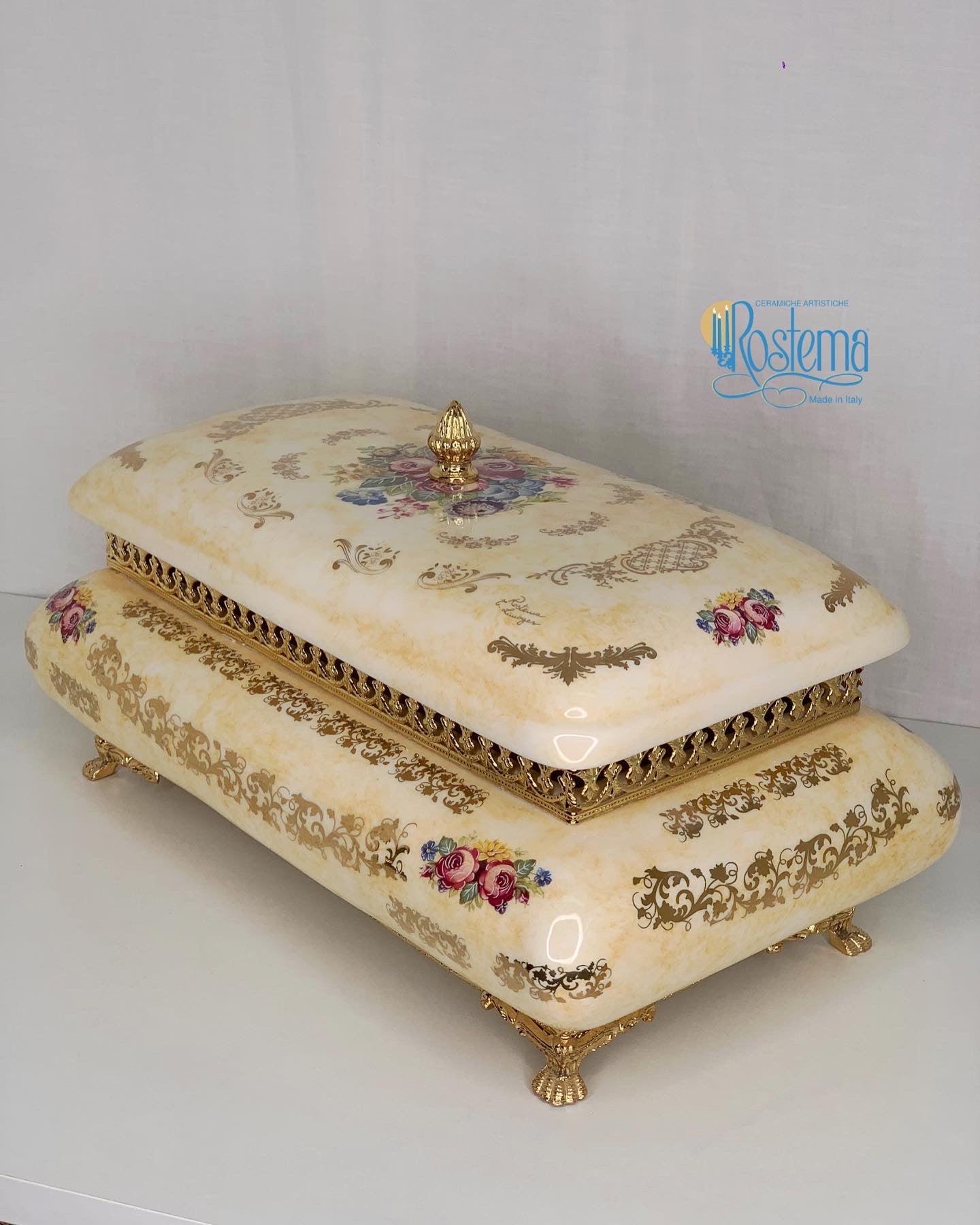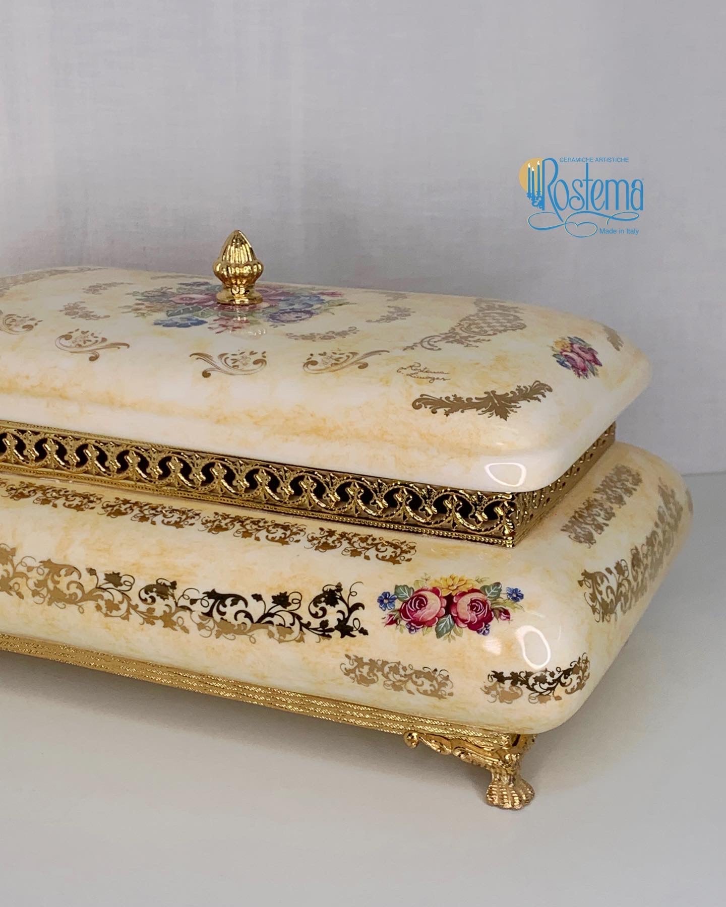 Ceramica smaltata cotta a gran fuoco, Ottone con bagno in Oro 24kt, Decorazioni in Oro.