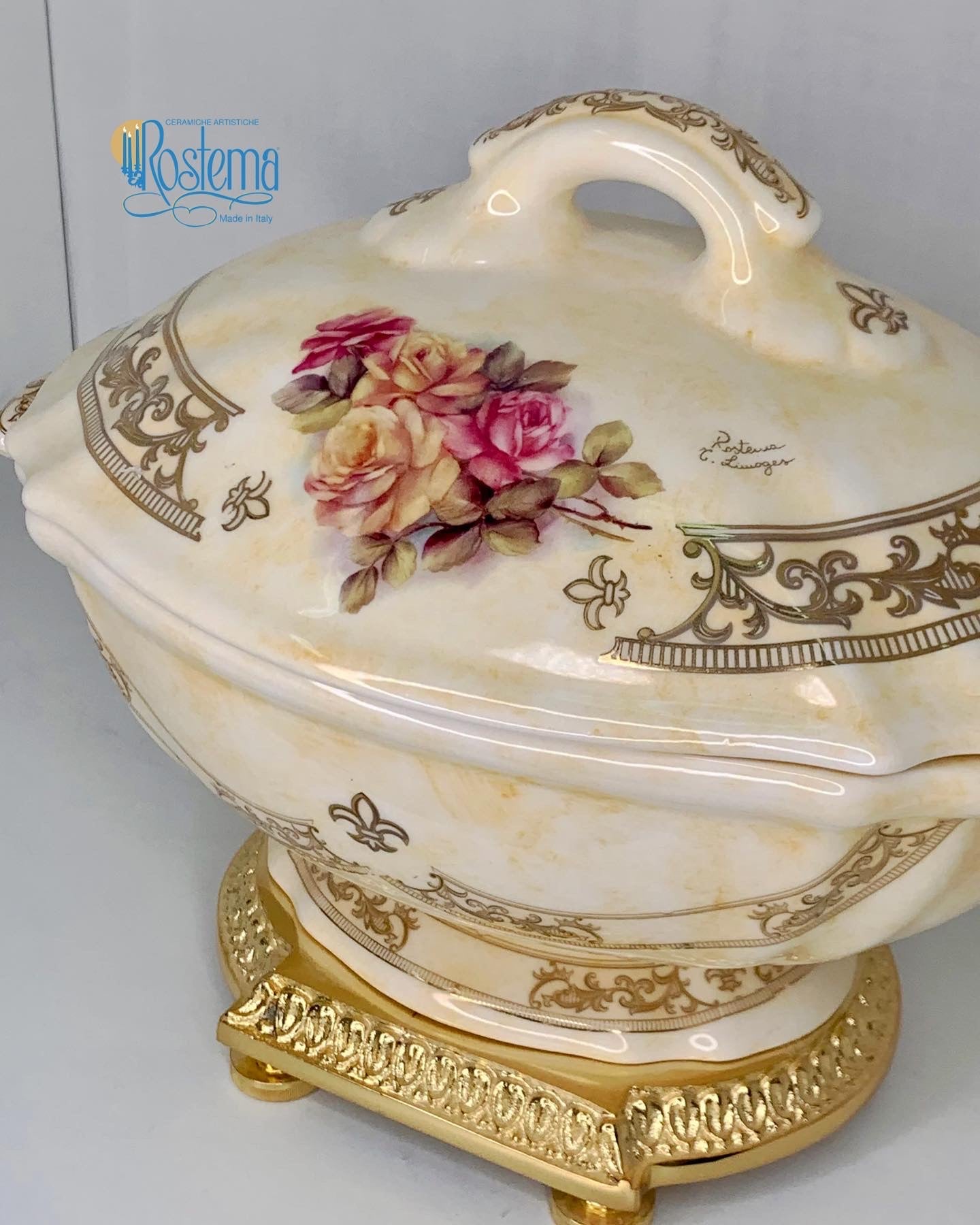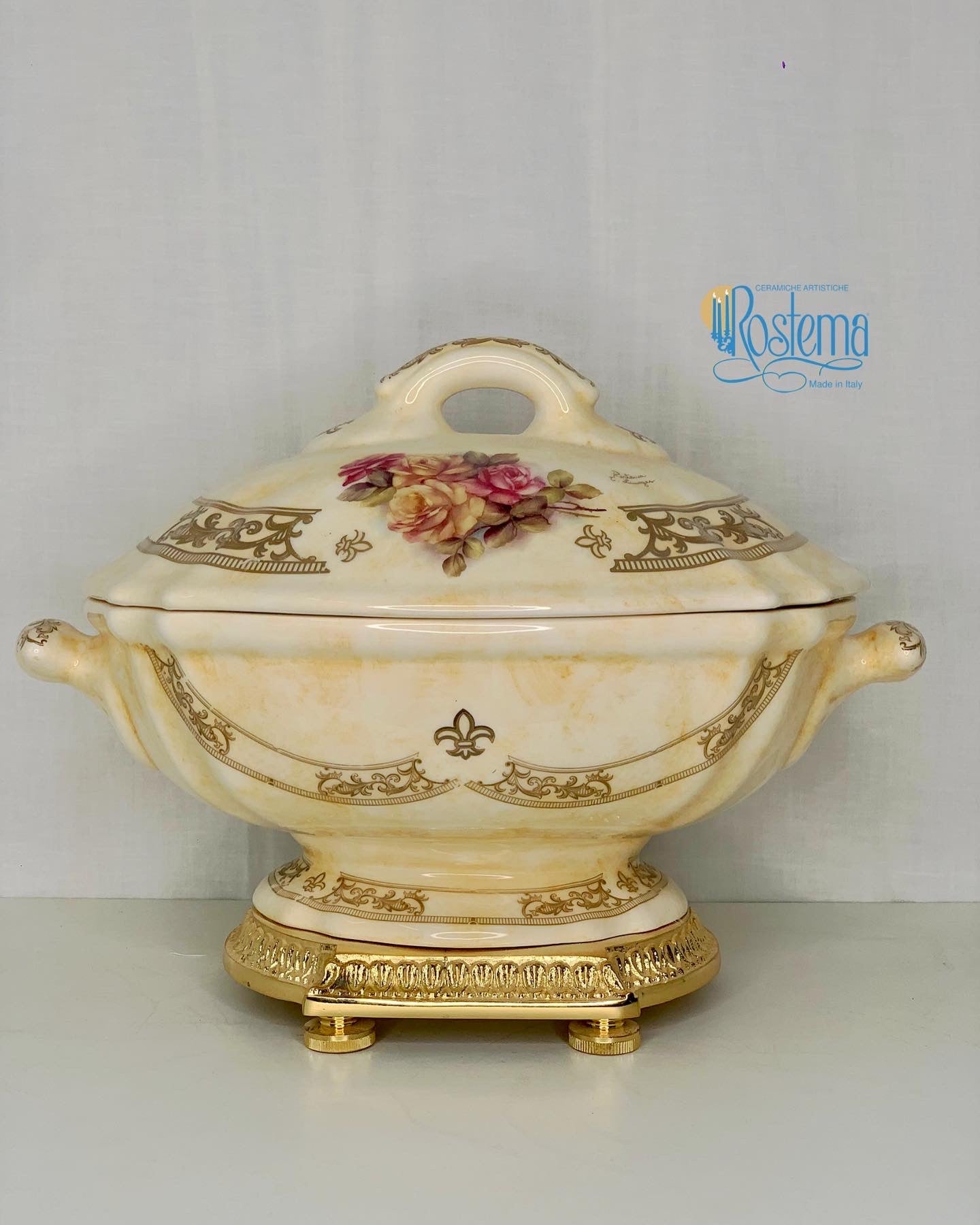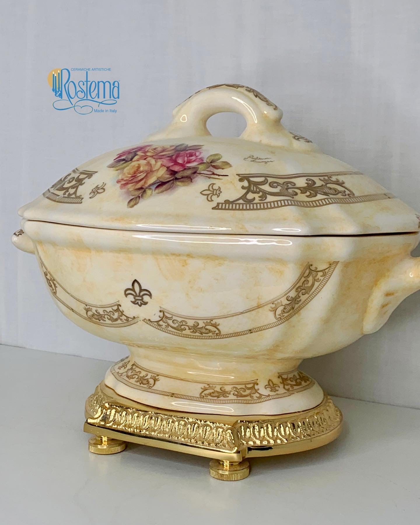 Ceramica smaltata cotta a gran fuoco, Ottone con bagno in Oro 24kt, Decorazioni in Oro.