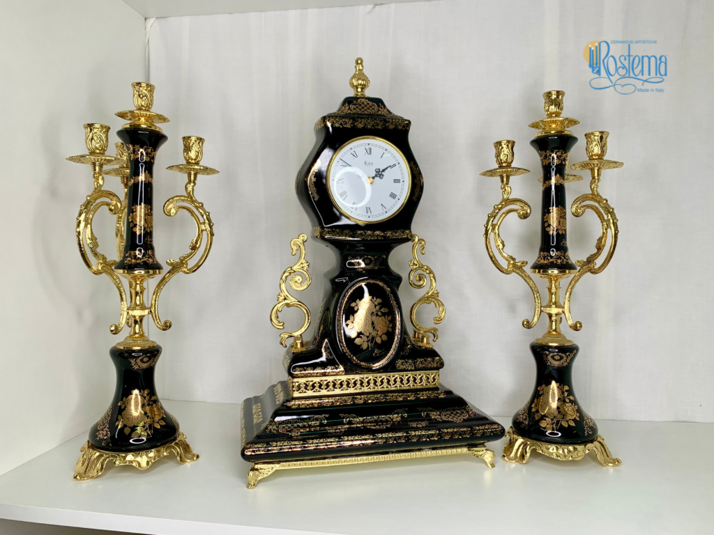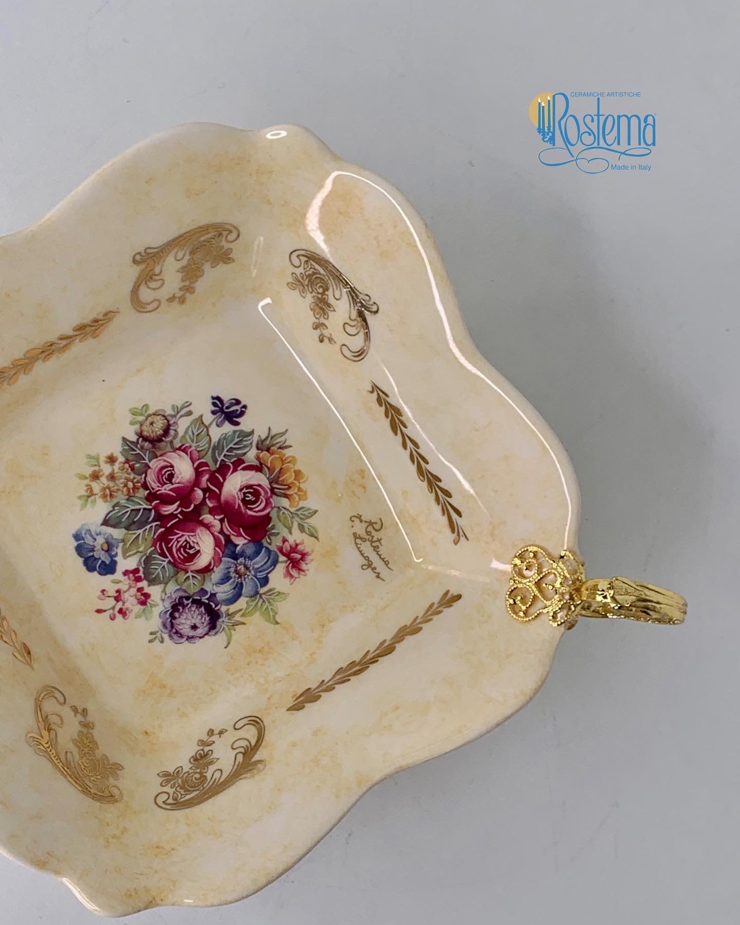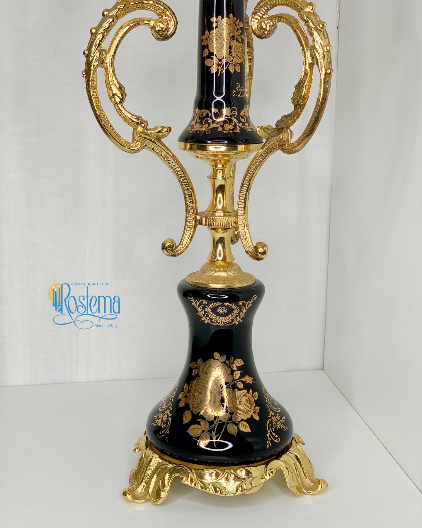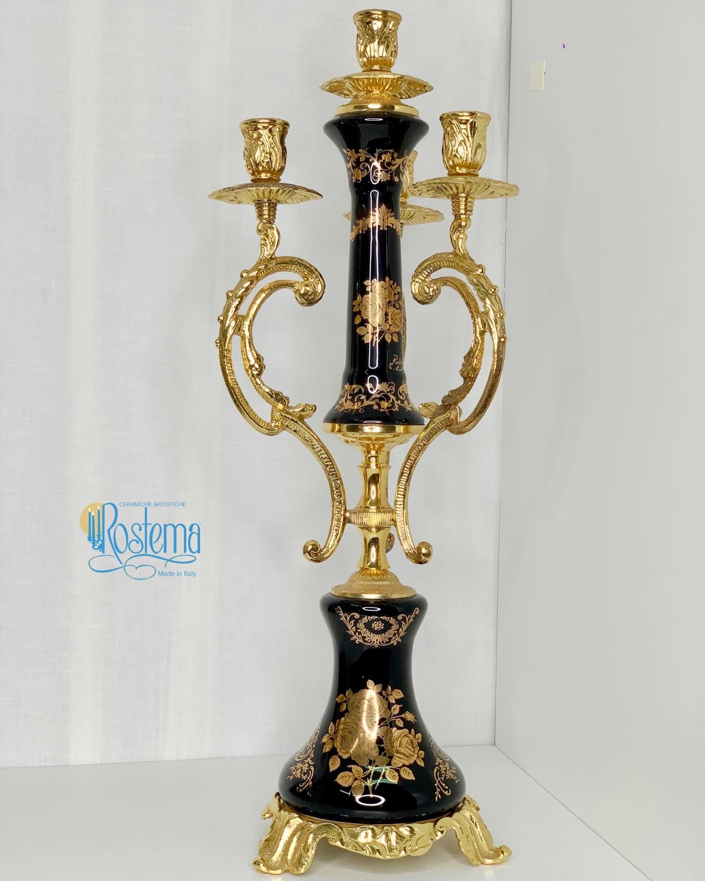 Ceramica smaltata cotta a gran fuoco, Ottone con bagno in Oro 24kt, Decorazioni in Oro.